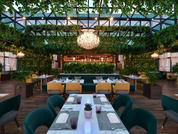 Located on the first level, Glass House offers an all-day dining experience and afternoon tea surrounded by lush greenery and beautiful chandeliers.